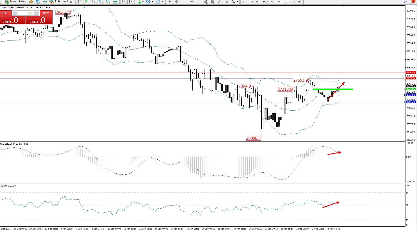 日经指数JPN225——4小时K线图显示: