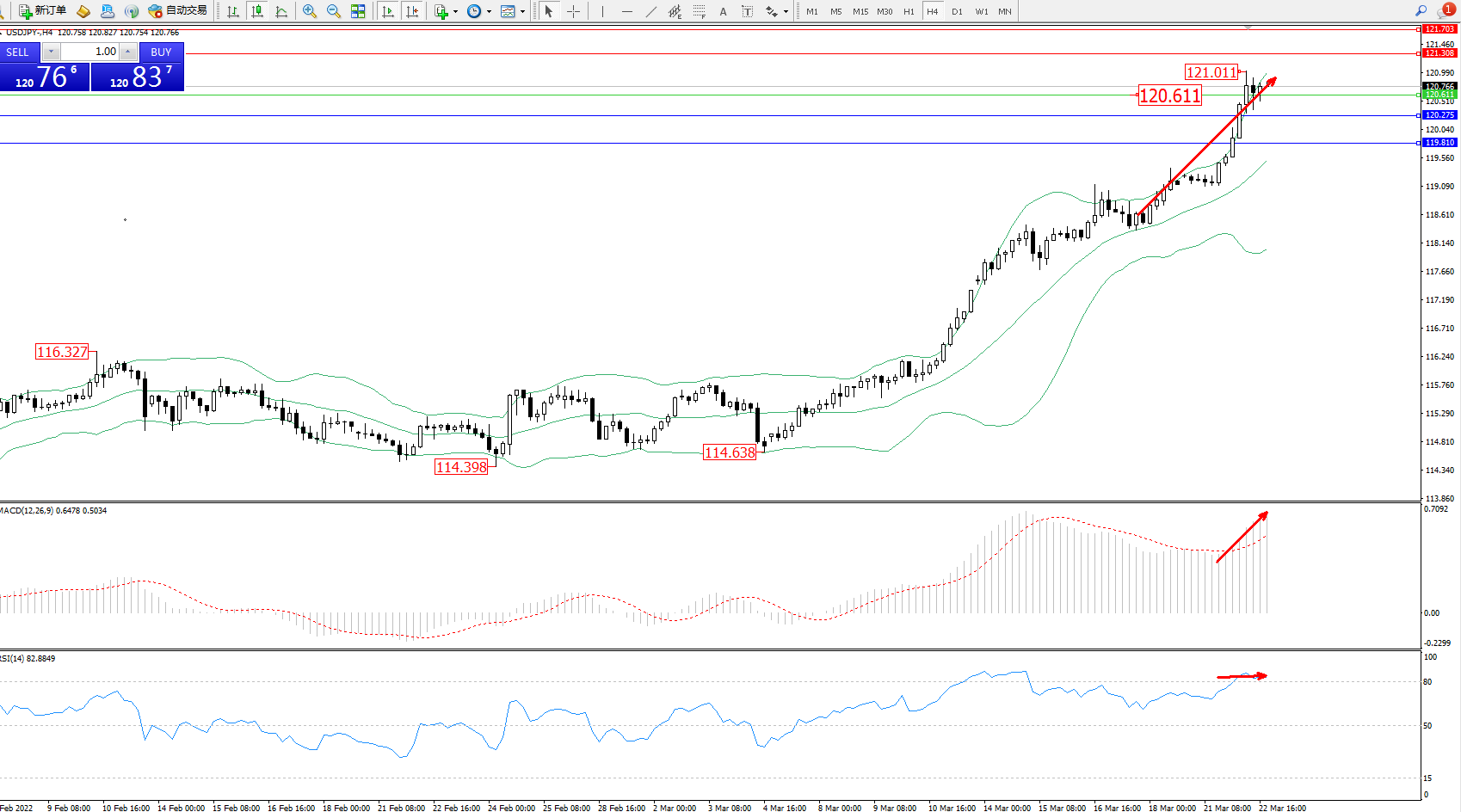 交易策略:120.611上方看涨,目标121.308、121.703