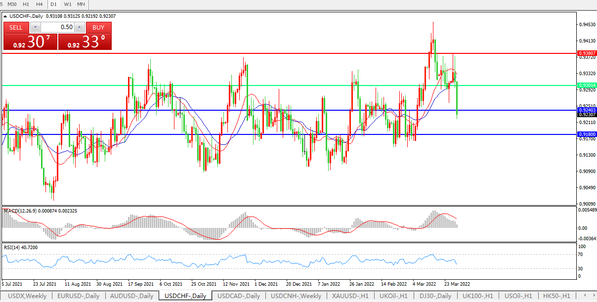 俄承诺减少攻击基辅,美元兑瑞郎大幅下挫