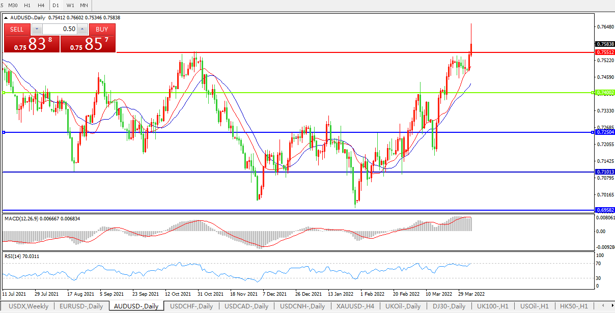 压制位:0.7550   0.7650