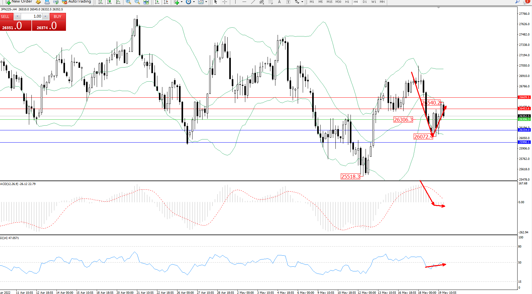 日经指数JPN225——4小时K线图显示: