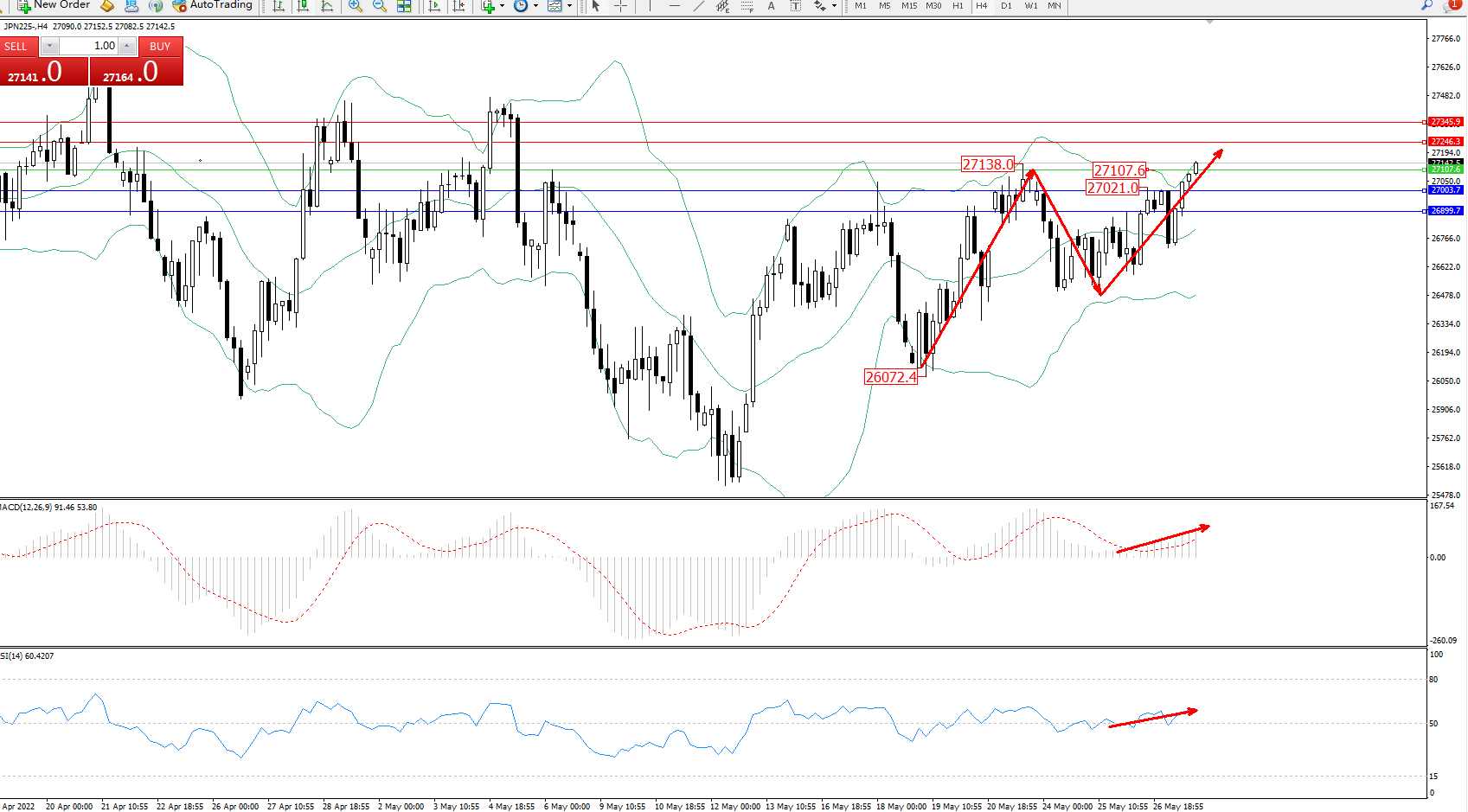 日经指数JPN225——4小时K线图显示: