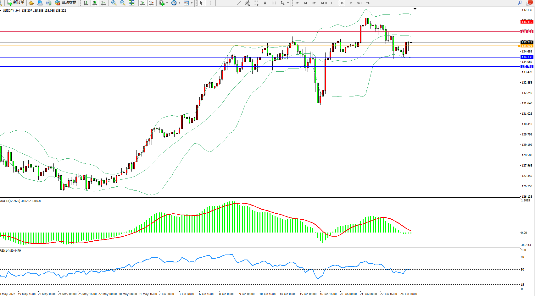 交易策略:135.001上方看涨,目标135.833、136.415