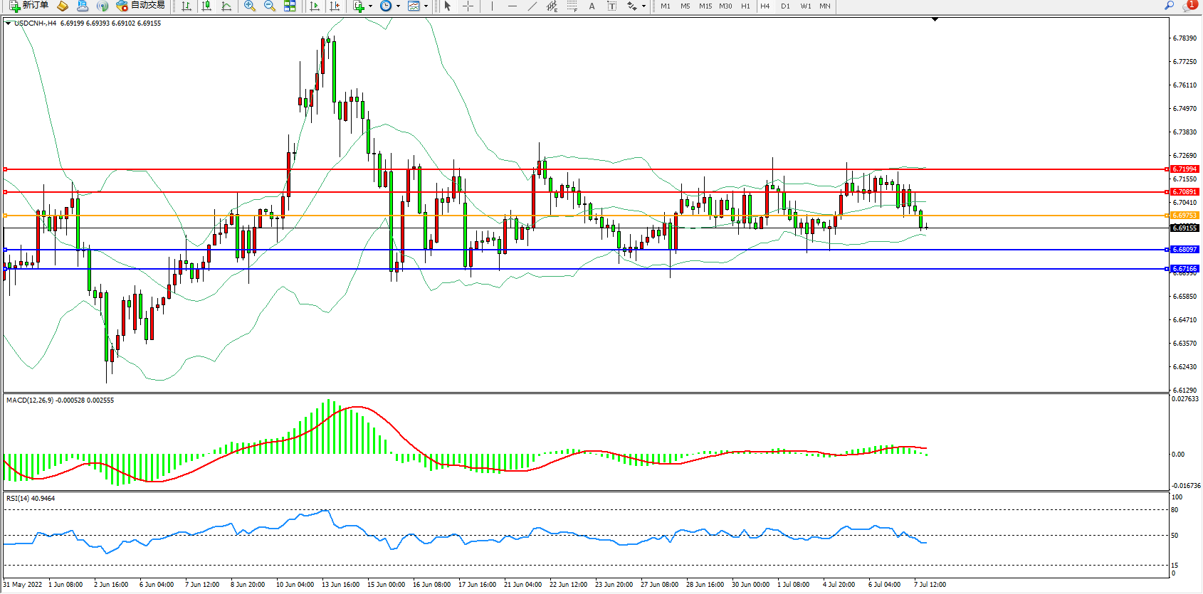 备选策略:6.69753上方看涨,目标6.70891、6.71994