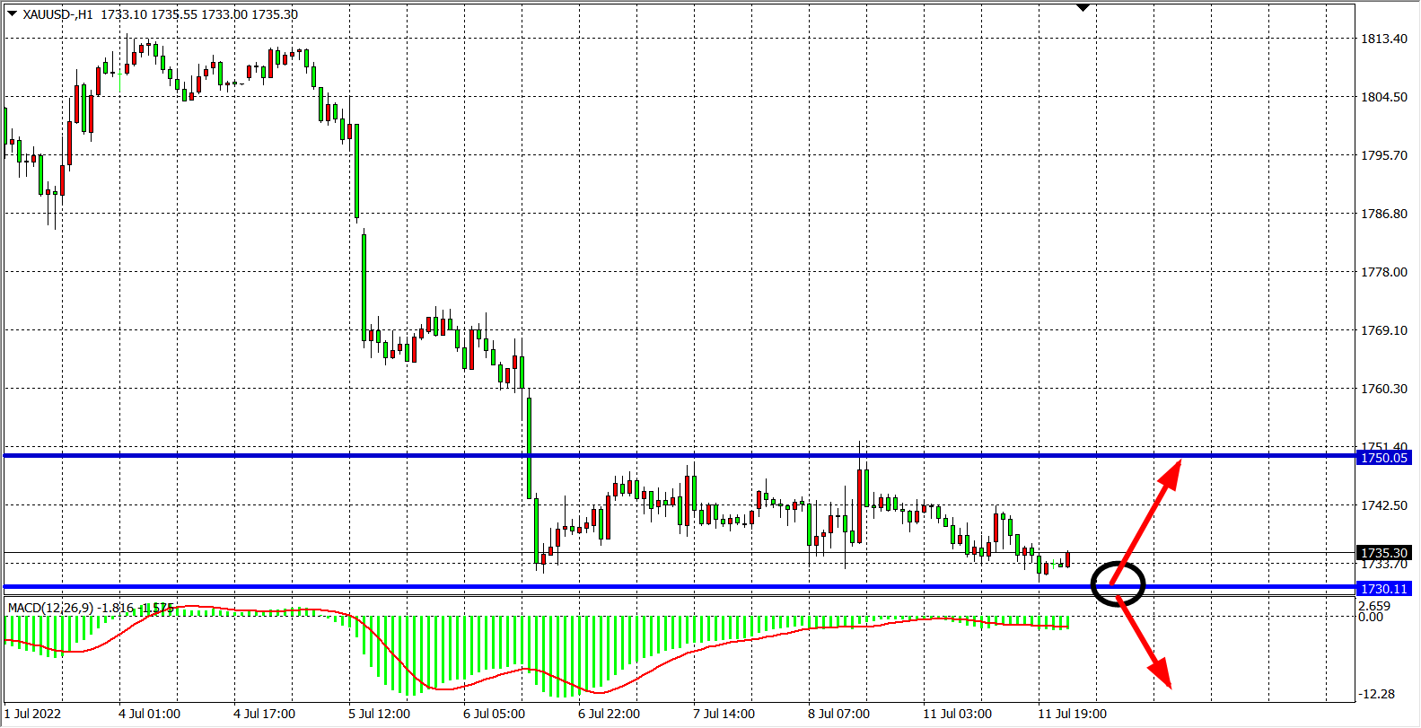 交易策略:在1730.00之下看跌,目标1720.00          1700.00