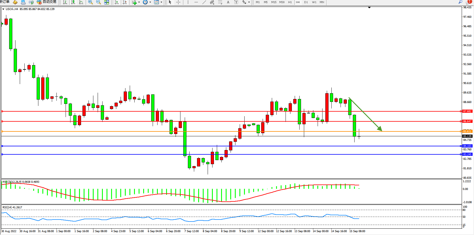 交易策略:85.611下方看跌,目标84.103、83.245