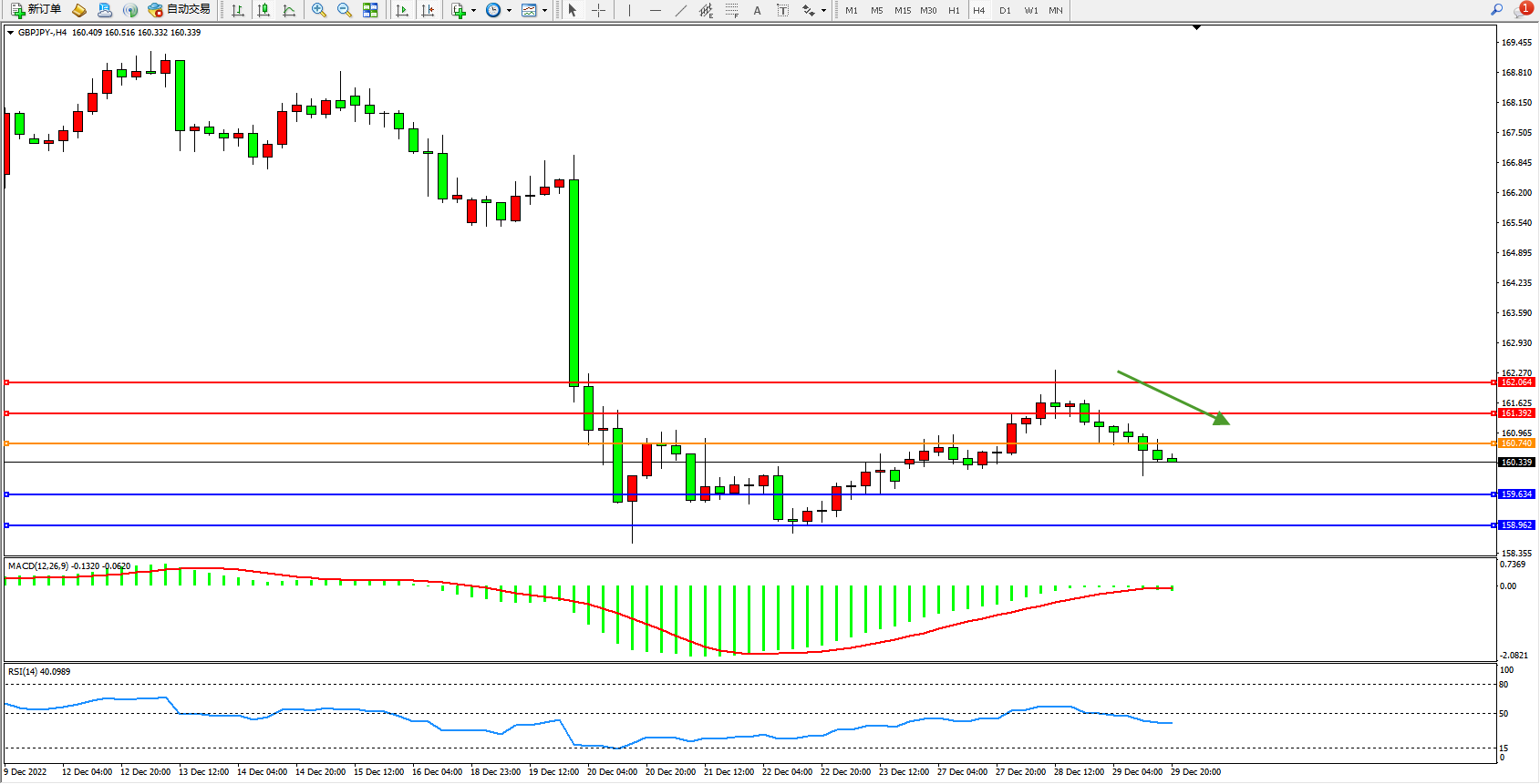 备选策略:160.740上方看涨,目标161.392、162.064