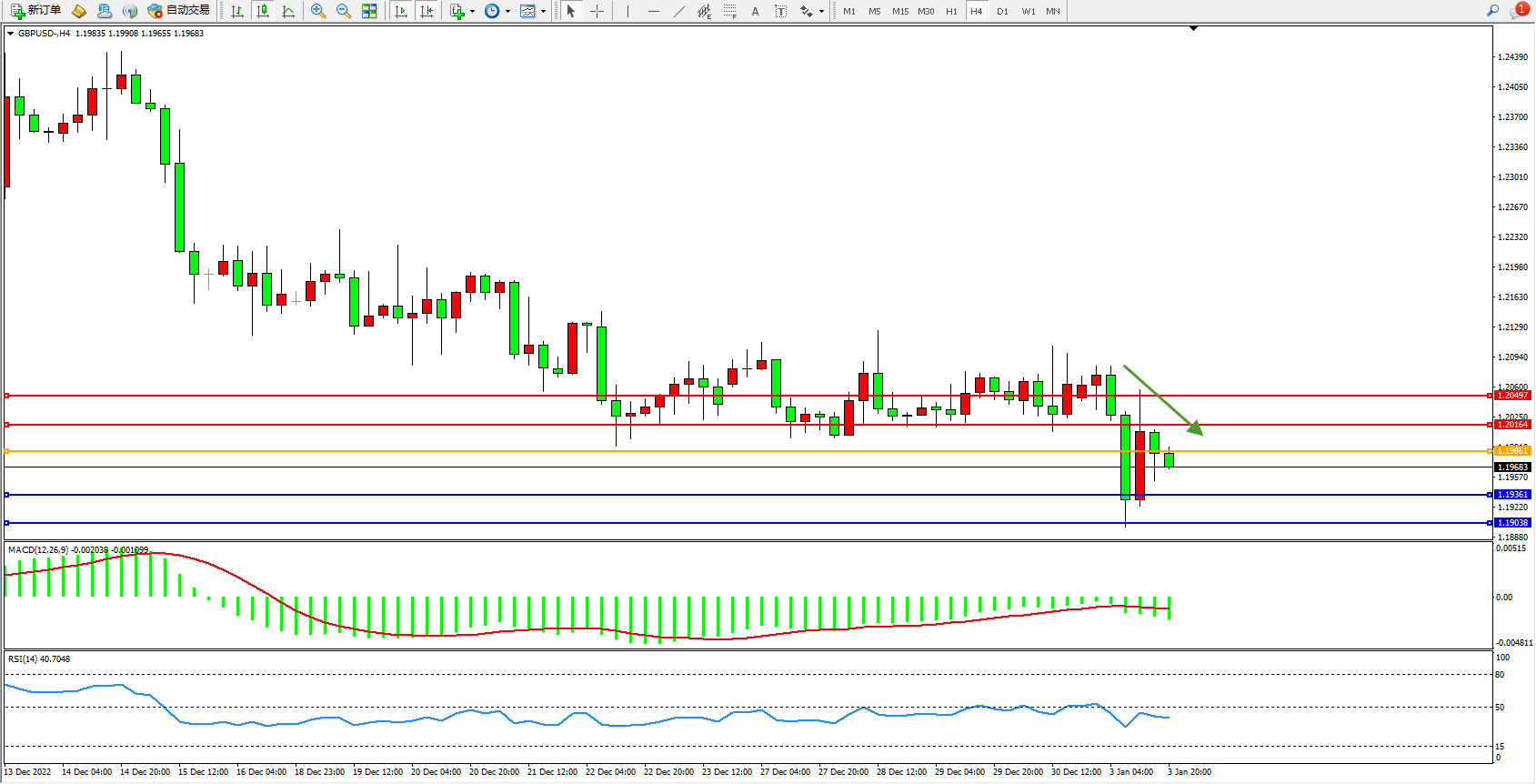 英镑美元GBPUSD ——4小时K线图显示:
