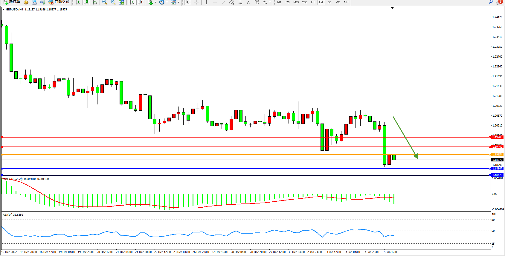 英镑美元GBPUSD ——4小时K线图显示: