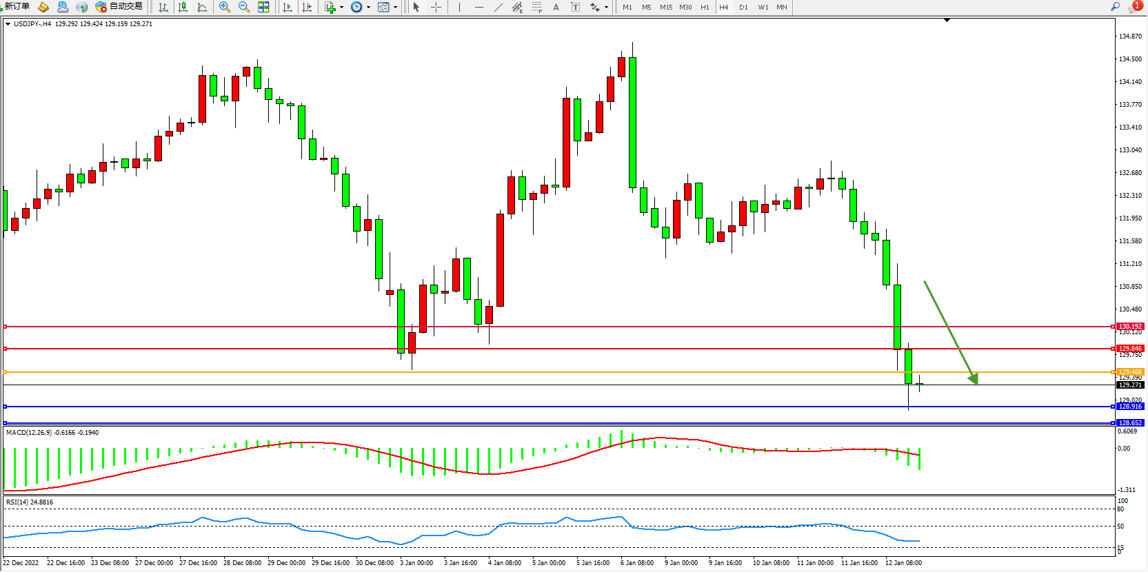 交易策略:129.468下方看跌,目标129.916、128.642