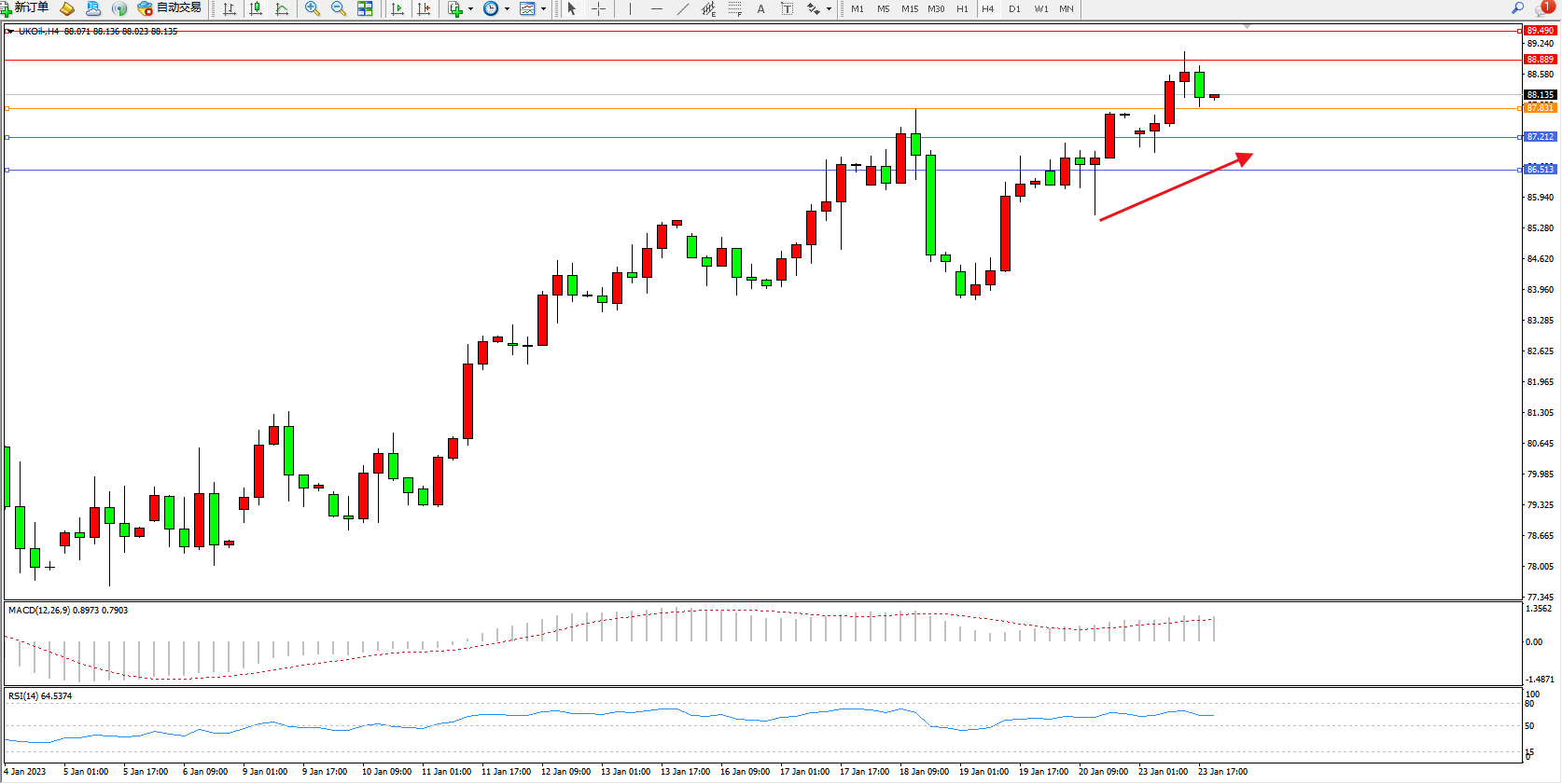 布油UKOil——4小时K线图显示: