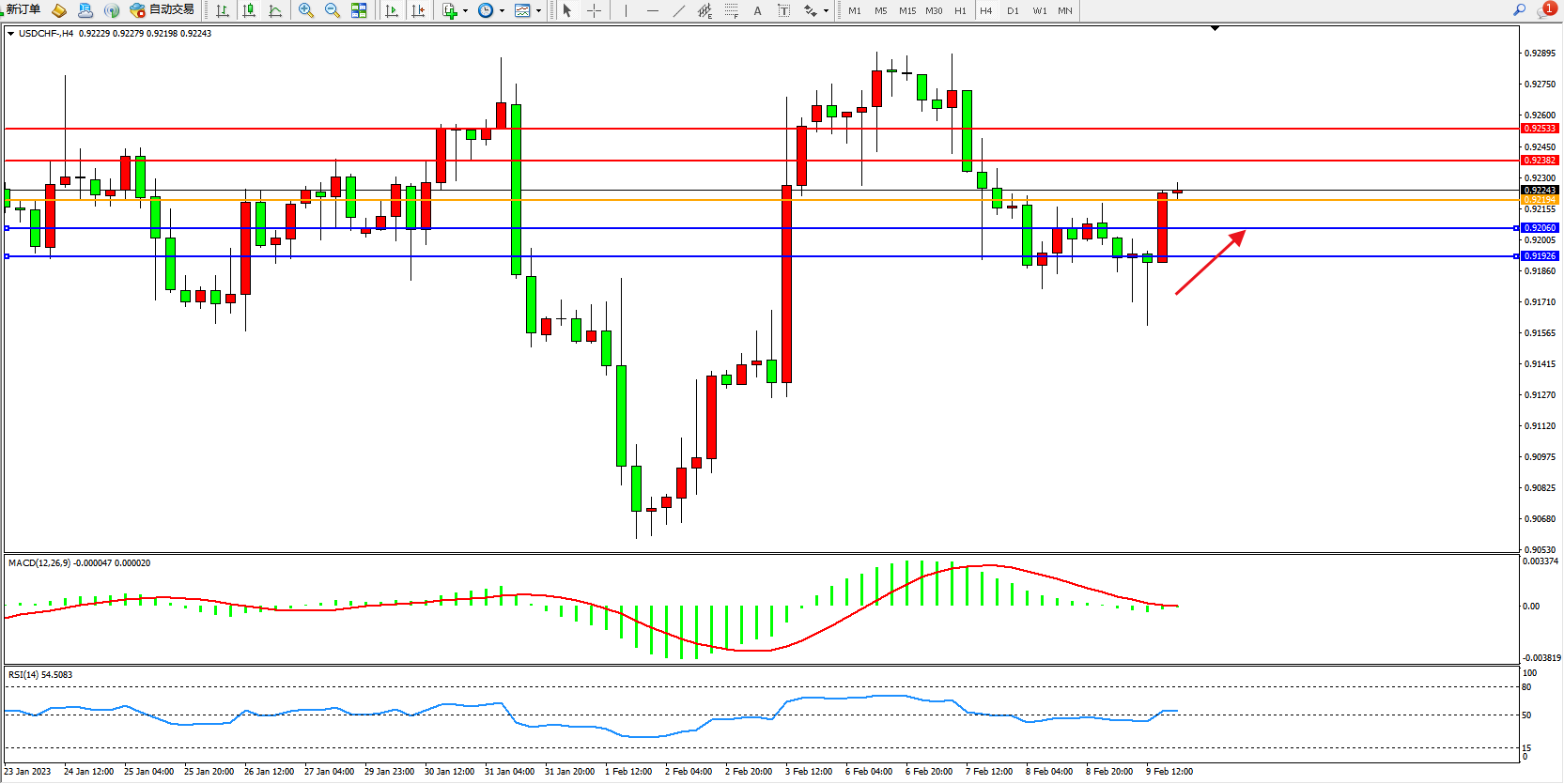交易策略:0.92194上方看涨,目标0.92382、0.92533