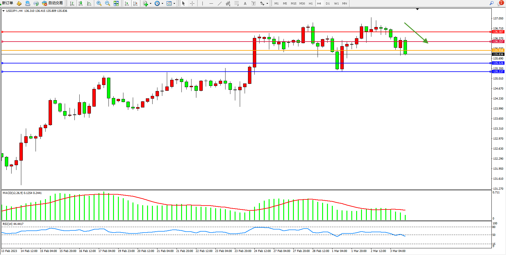 交易策略:135.958下方看跌,目标135.926 135.237