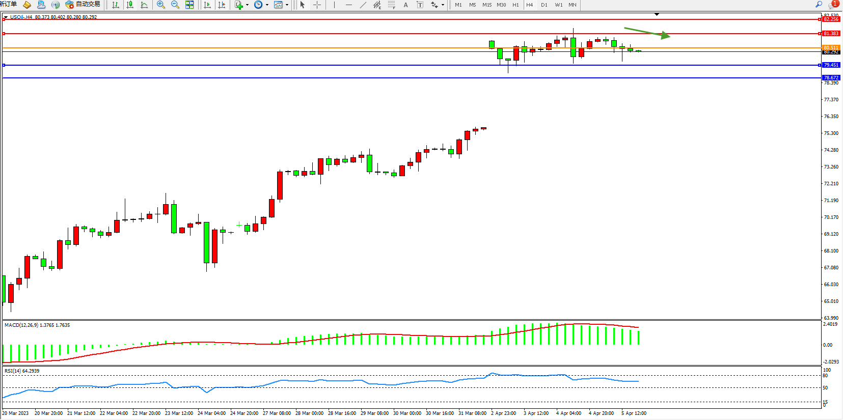 原油USOil——4小时K线图显示: