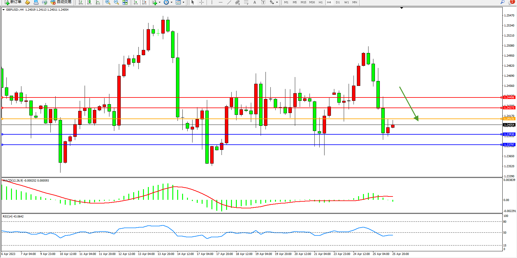 英镑美元GBPUSD ——4小时K线图显示: