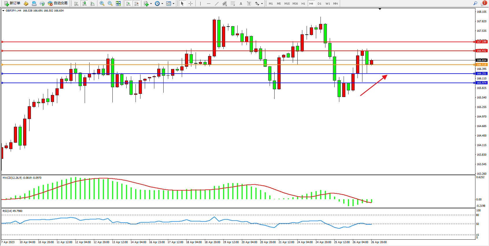 交易策略:166.518上方看涨,目标166.932  167.199