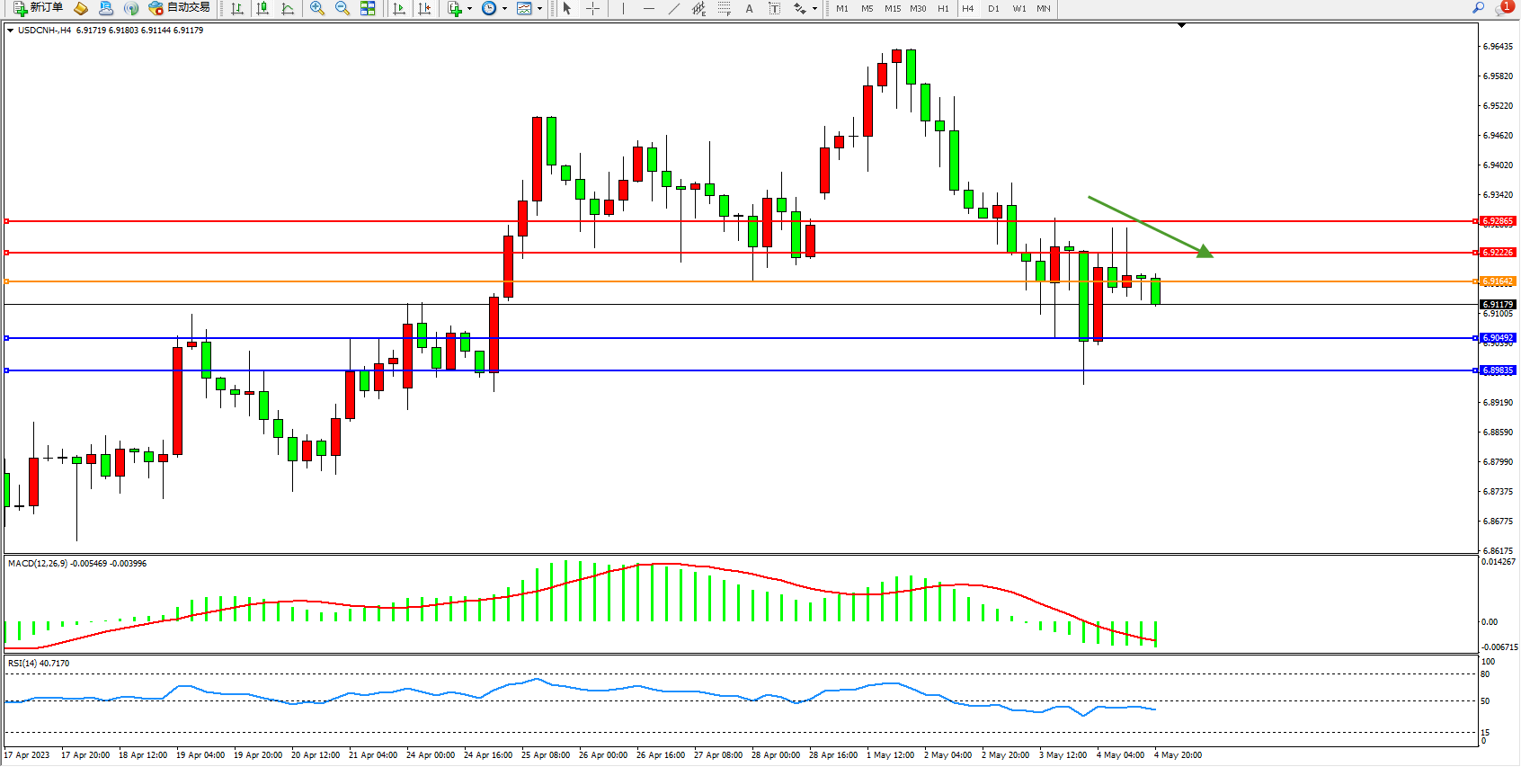 交易策略:6.91642下方看跌,目标6.90492  6.89835