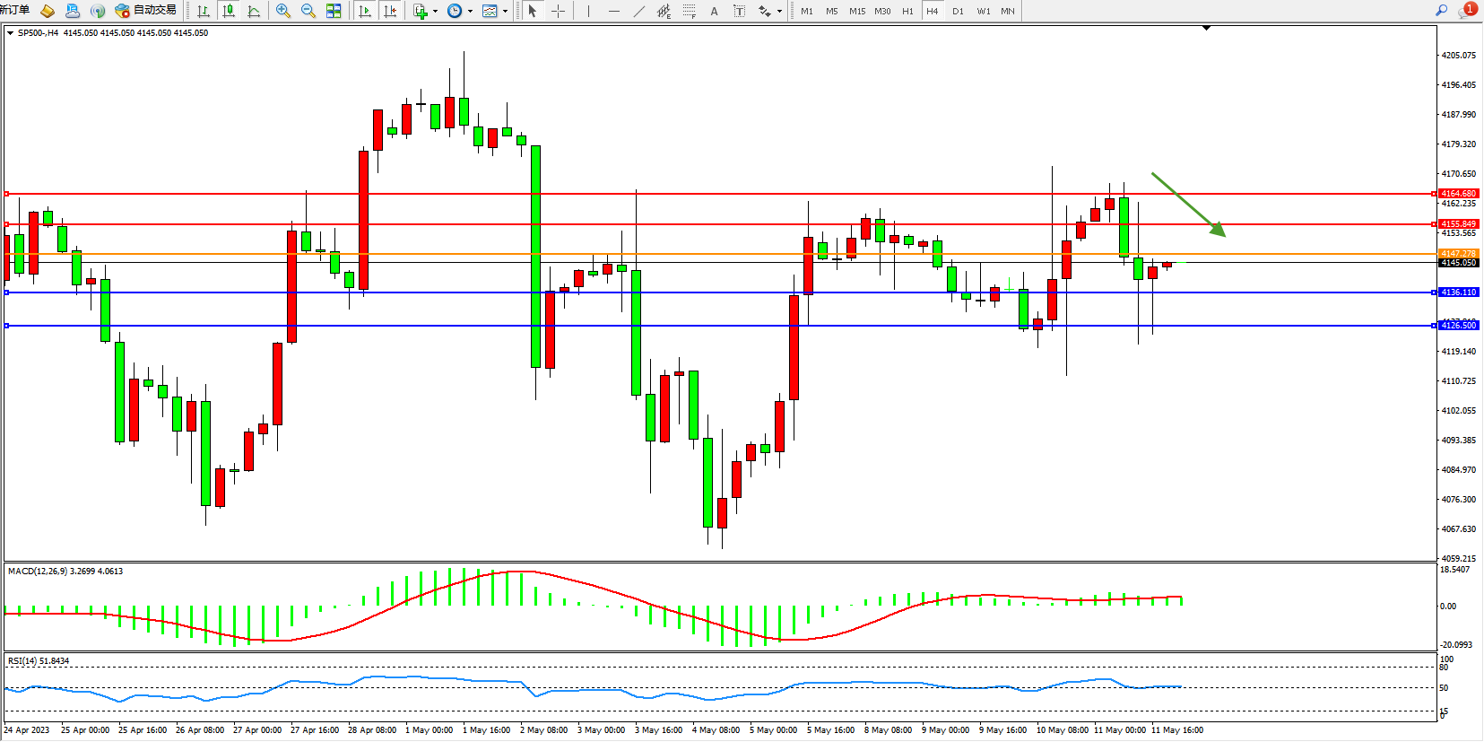 标普SP500——4小时K线图显示: