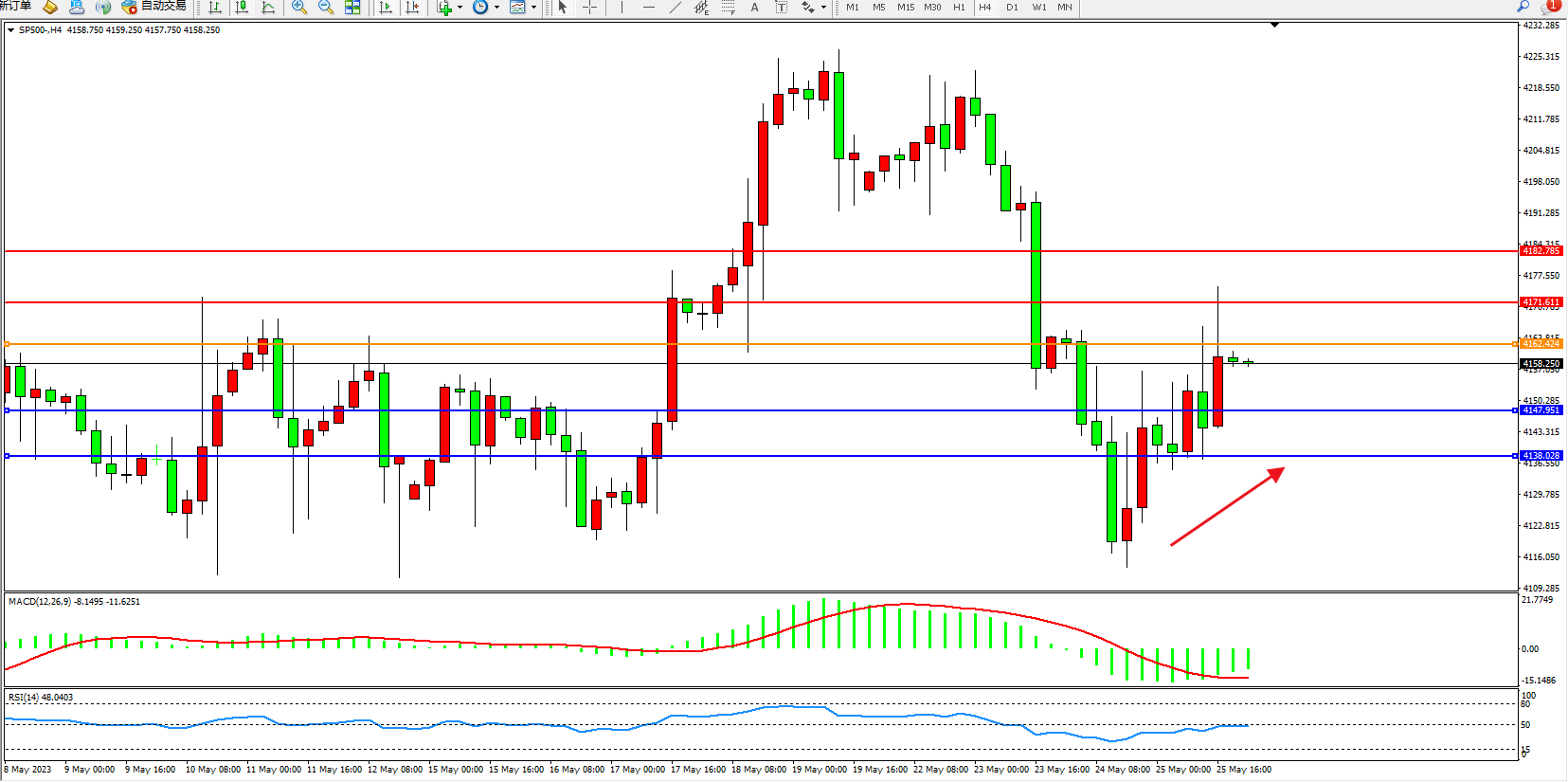 标普SP500——4小时K线图显示: