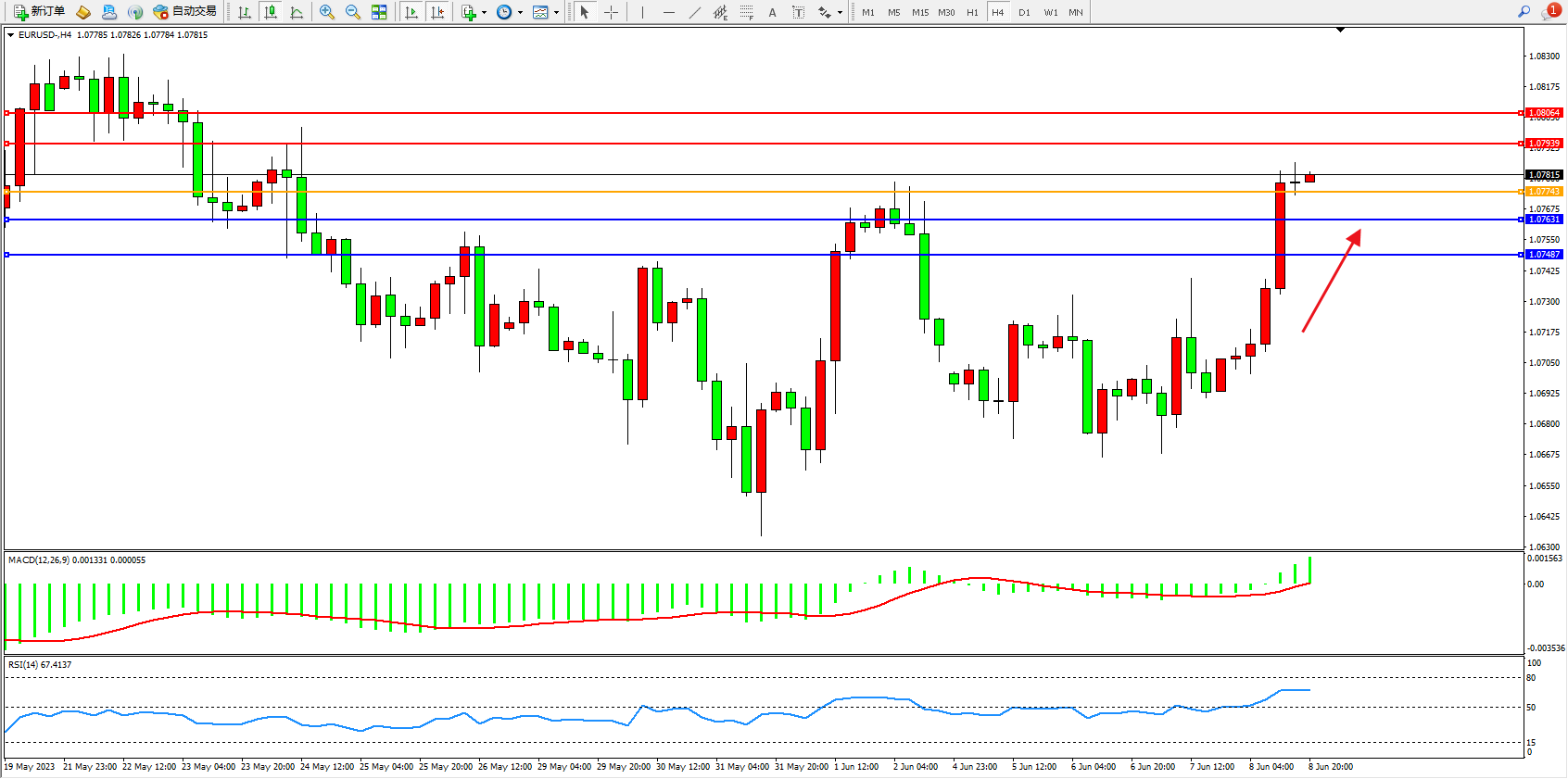 交易策略:1.07743上方看涨,目标1.07939  1.08064