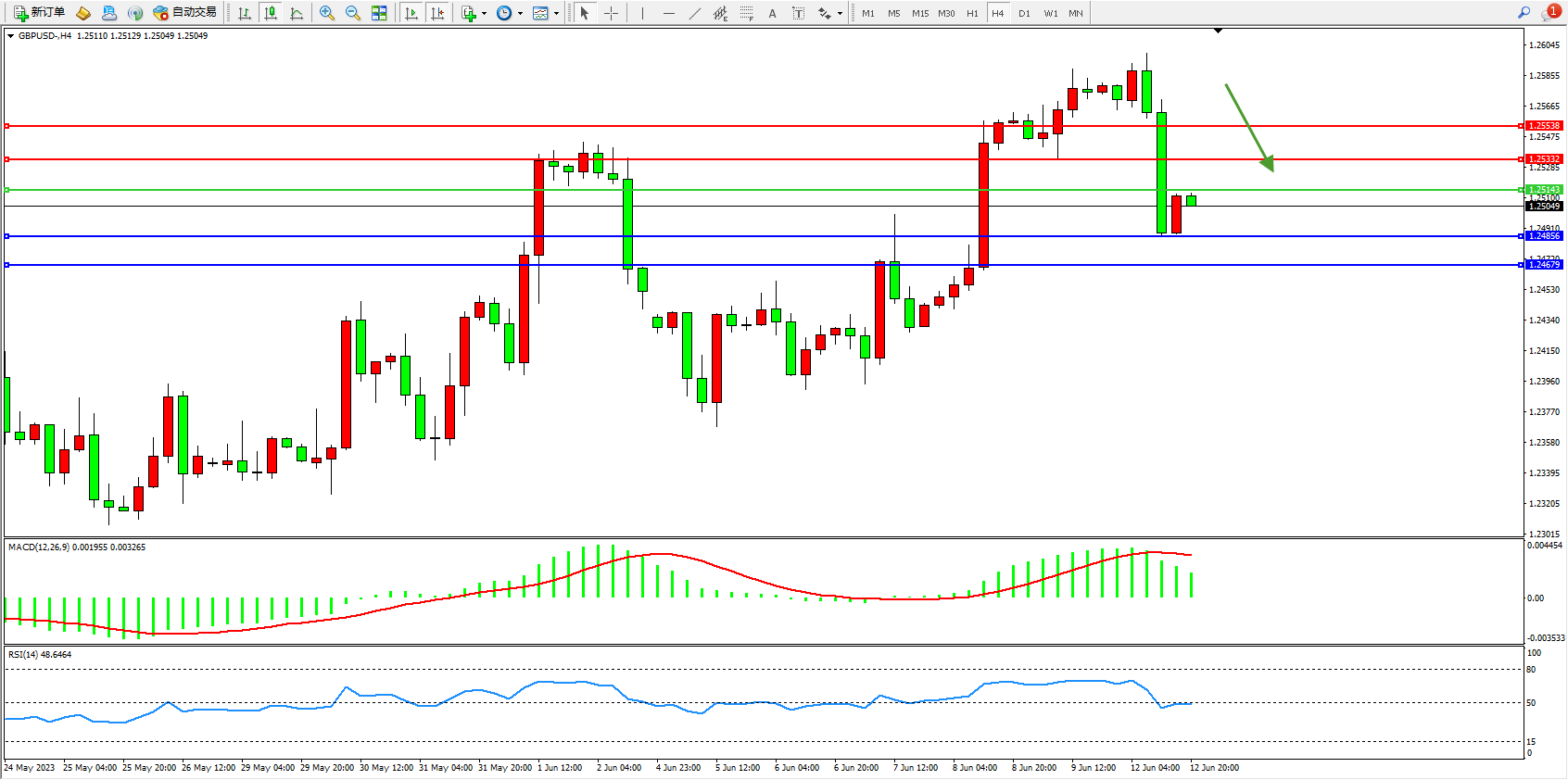 英镑美元GBPUSD ——4小时K线图显示: