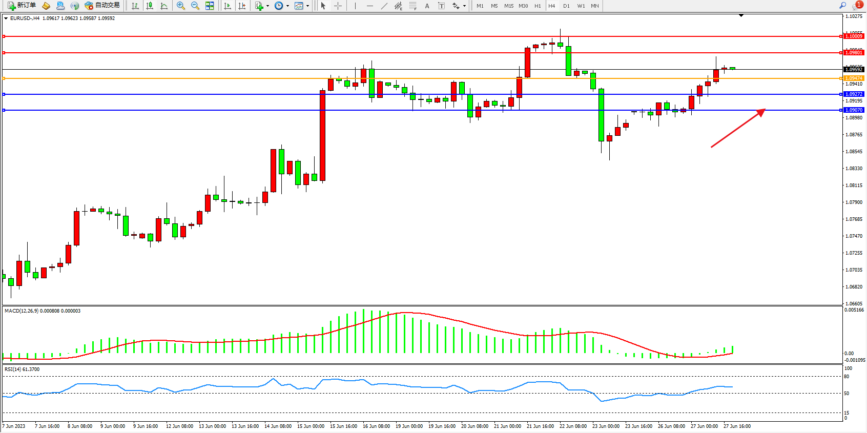 交易策略:1.09474上方看涨,目标1.09801  1.10009