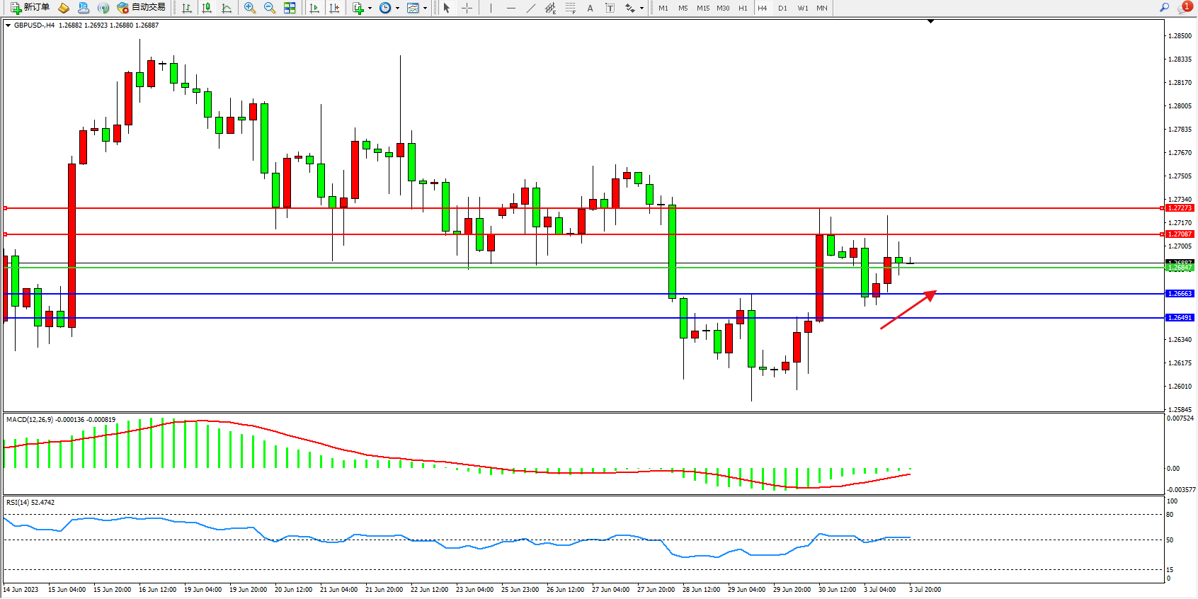 备选策略:1.26847下方看跌,目标1.26663  1.26491