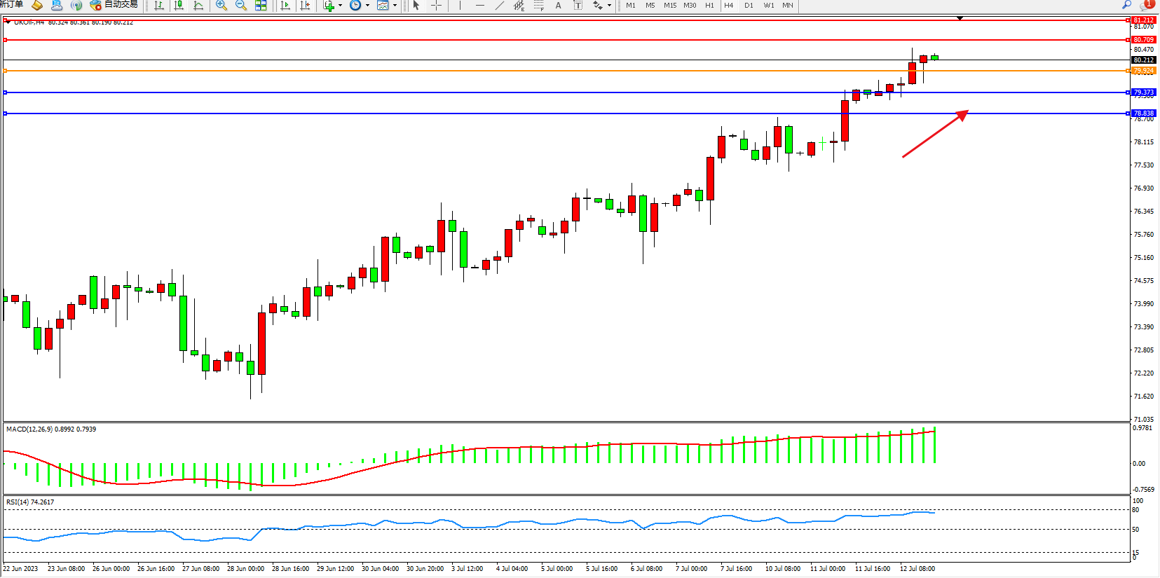 布油UKOil——4小时K线图显示: