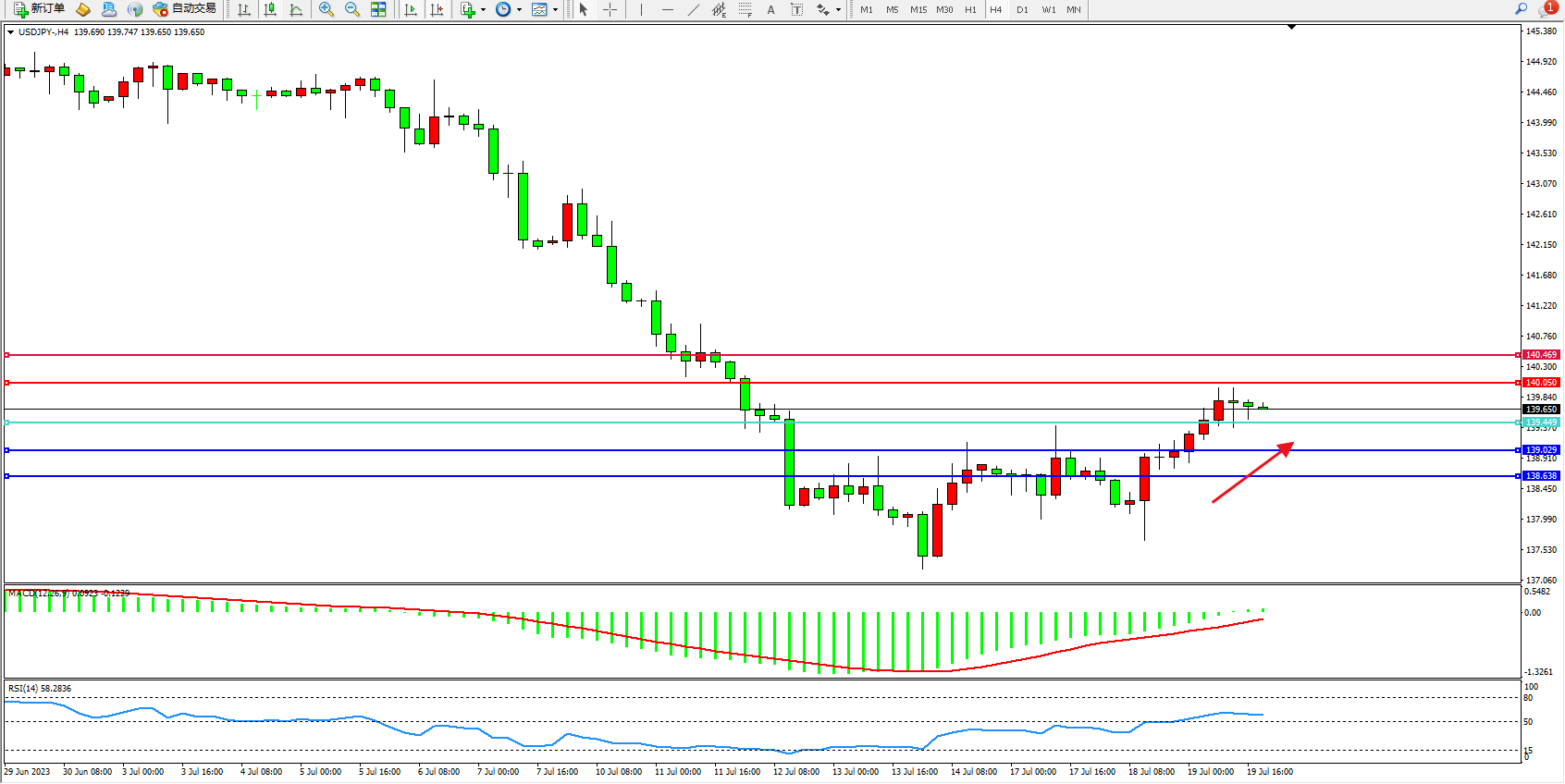 阻力位:140.050  140.469