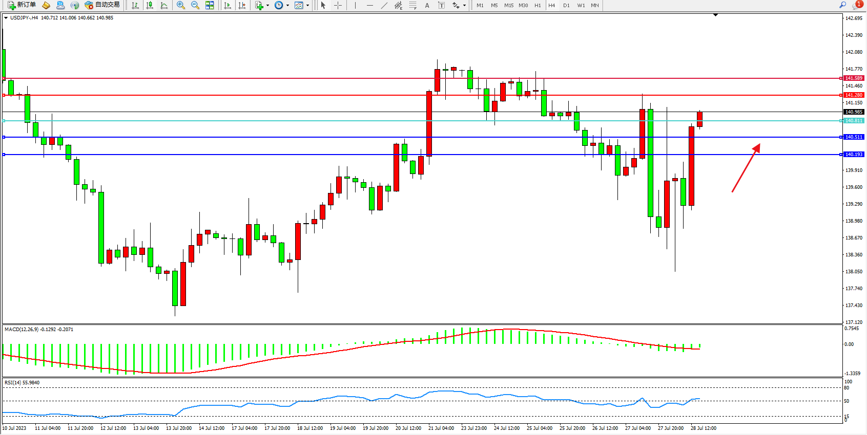 交易策略:140.811上方看涨,目标141.280 141.589