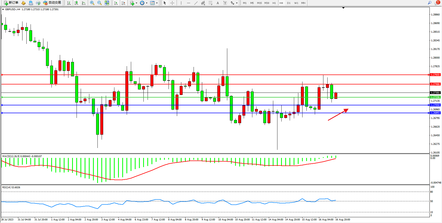 英镑美元GBPUSD ——4小时K线图显示: