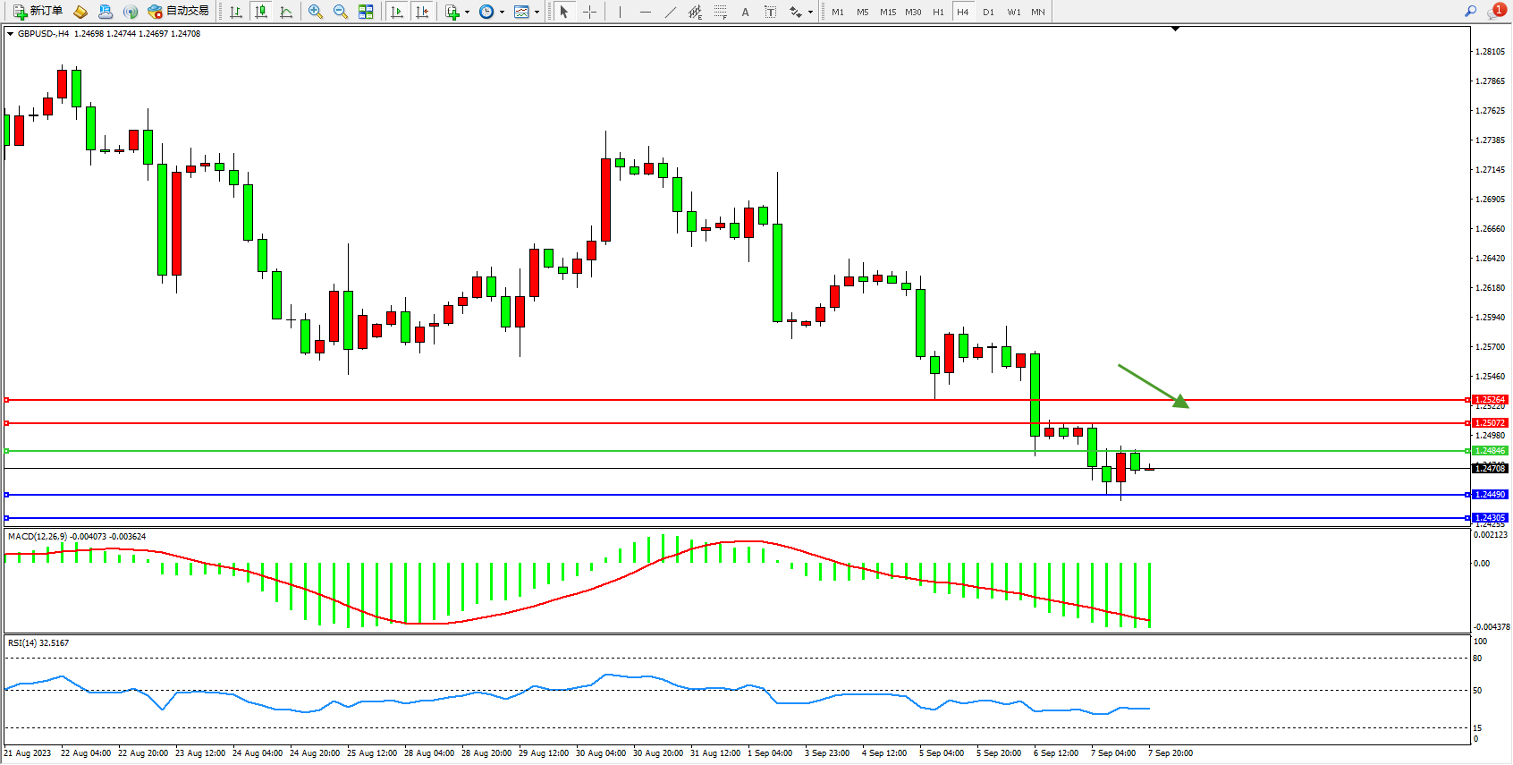 英镑美元GBPUSD ——4小时K线图显示: