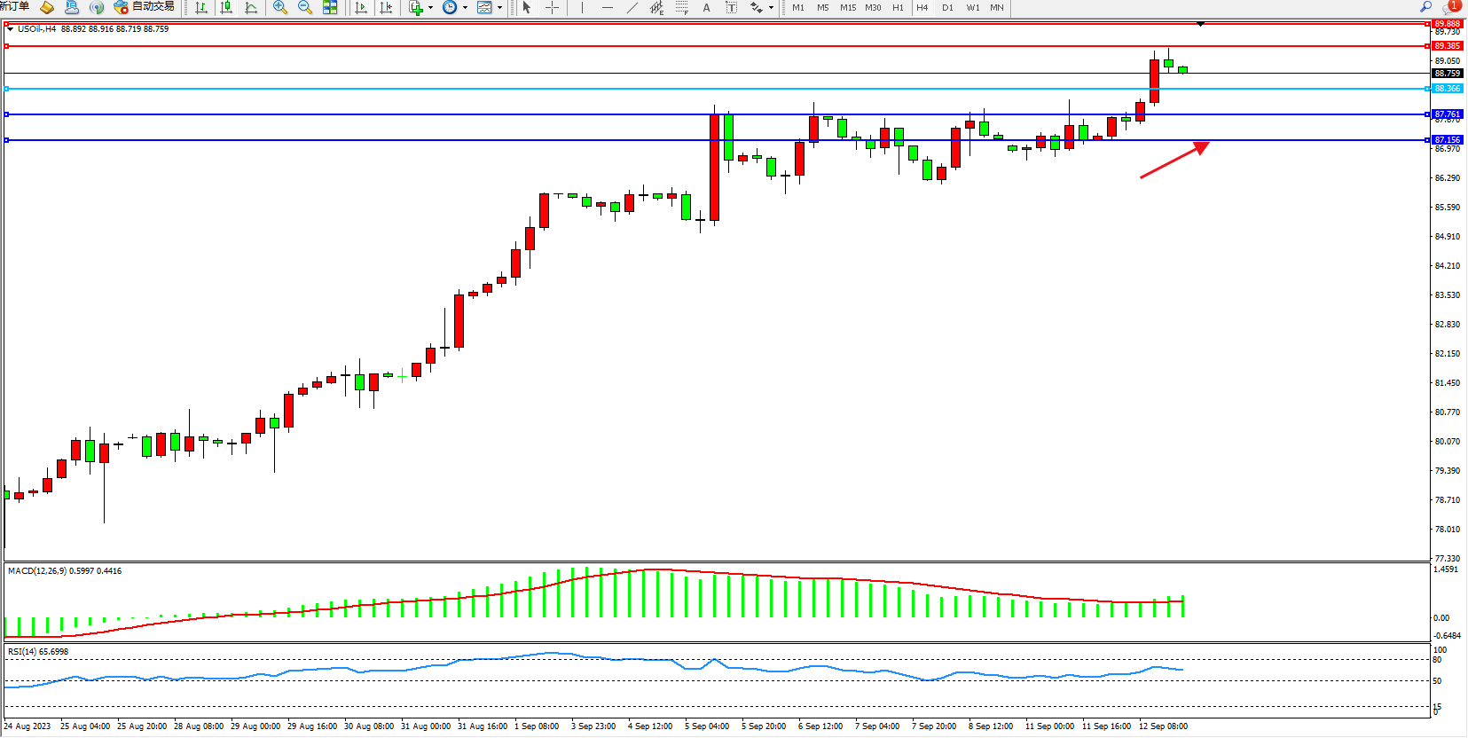 原油USOil——4小时K线图显示: