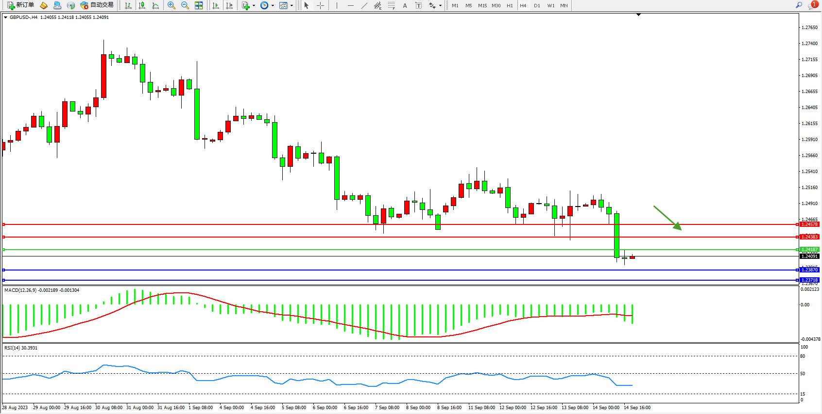 英镑美元GBPUSD ——4小时K线图显示: