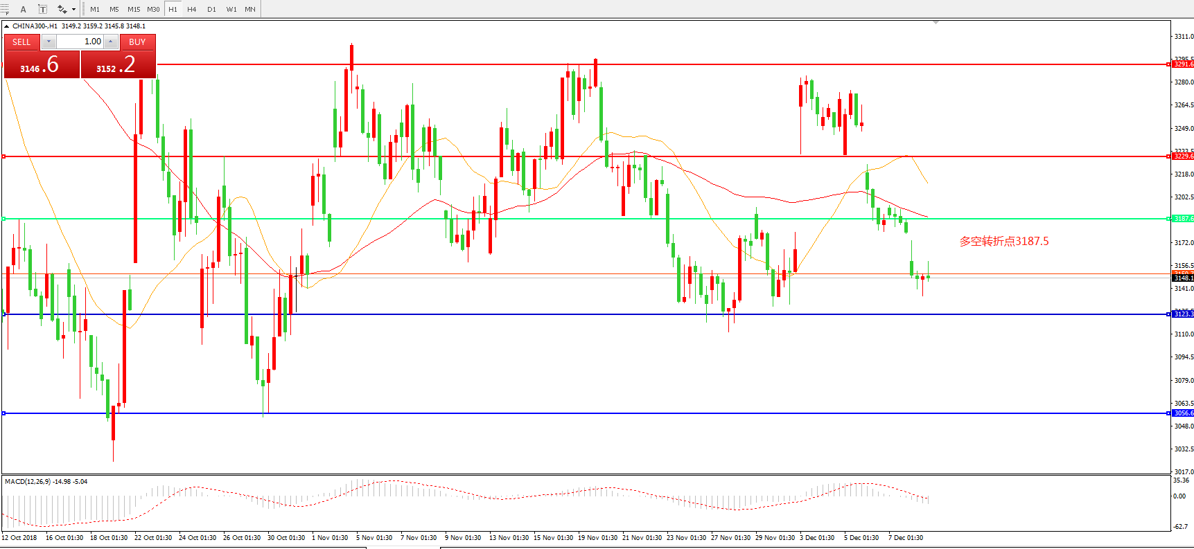 多空转折点:3187.50
