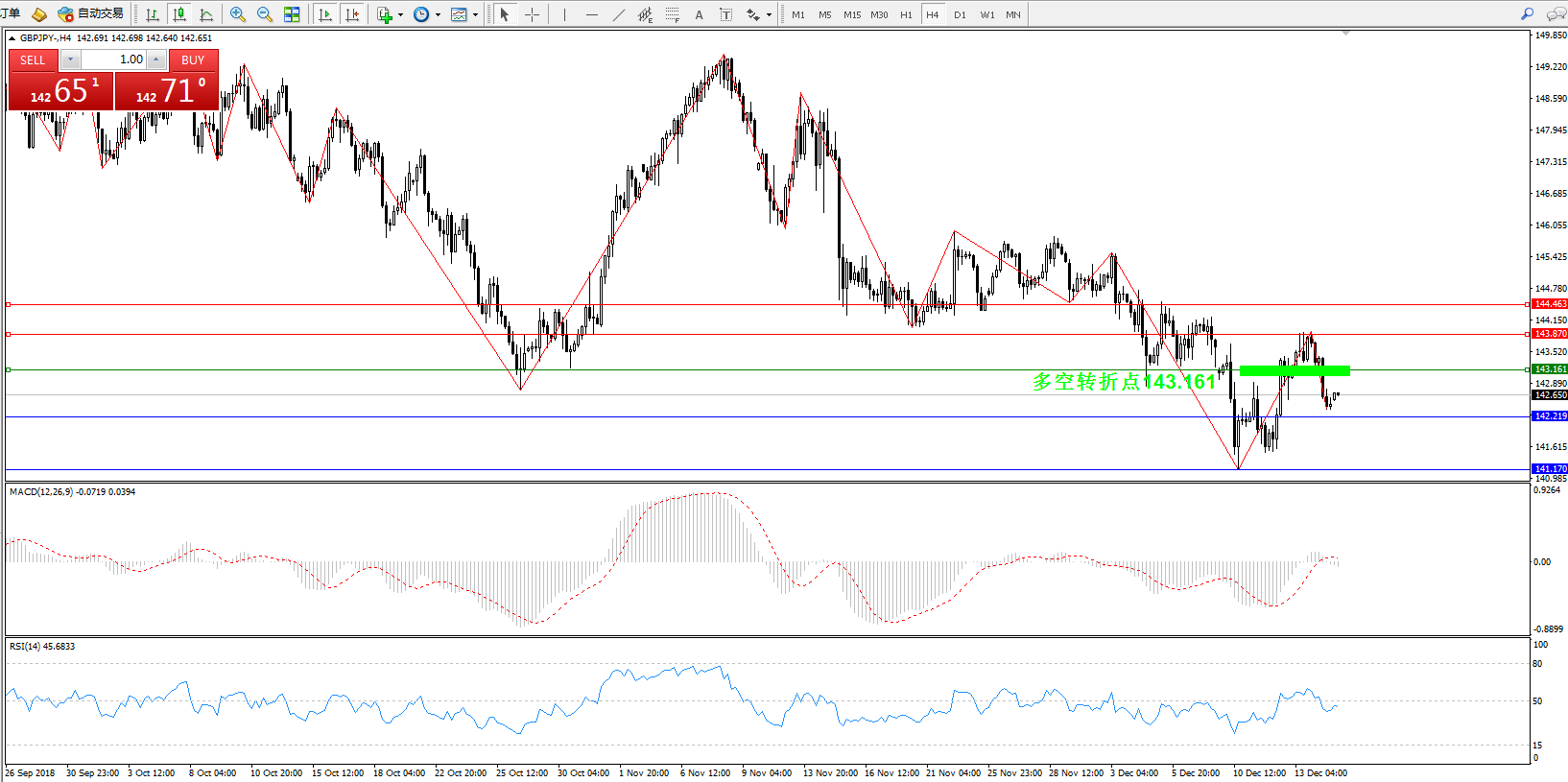备选策略:143.161下方看跌,目标142.219、141.170