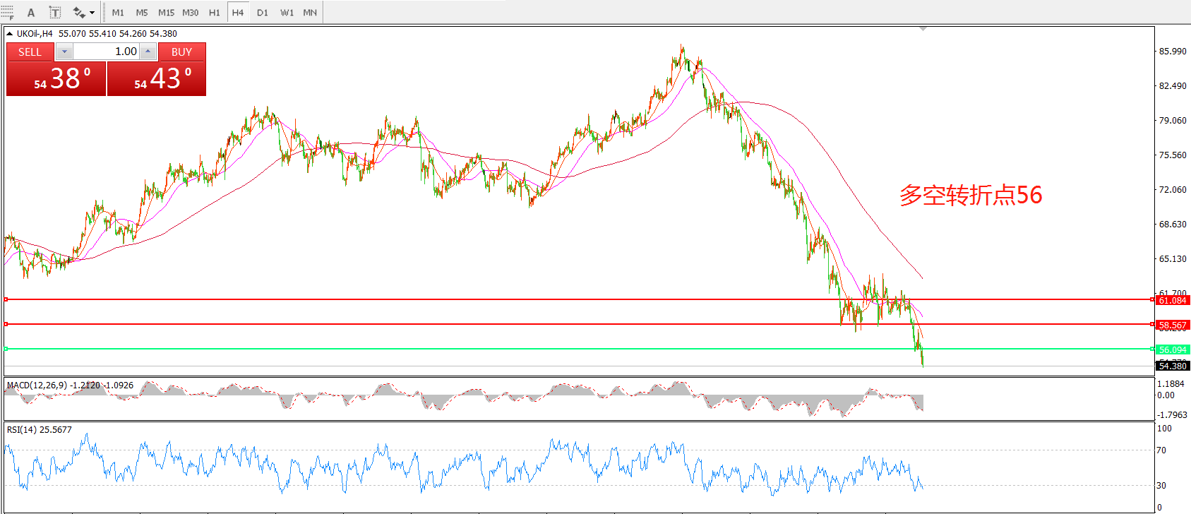 交易策略:在56.00之下看跌,目标53.00    50.00