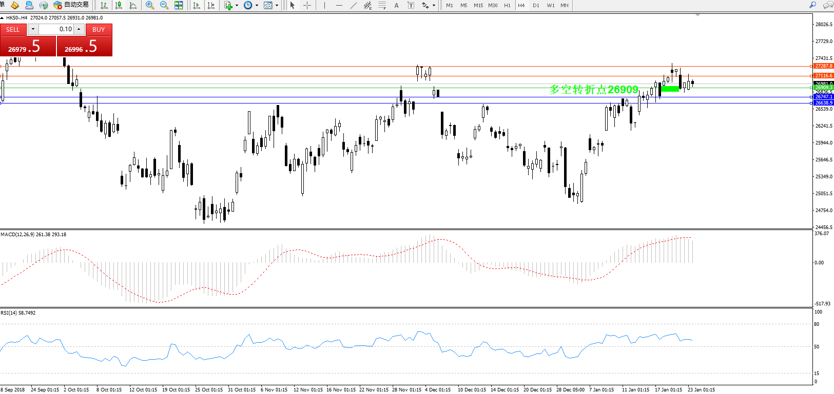 交易策略:26909上方看涨,目标27116、27287