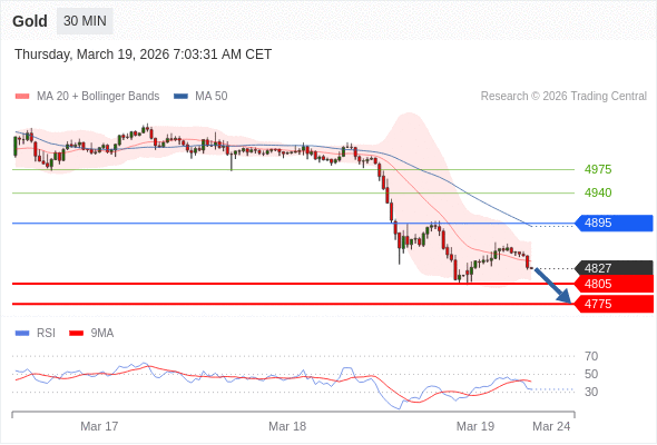 在 4895 之下,看跌,目标价位为 4805 ,然后为 4775 。
