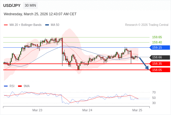 在 159.15 之下,看跌,目标价位为 158.35 ,然后为 158.05 。