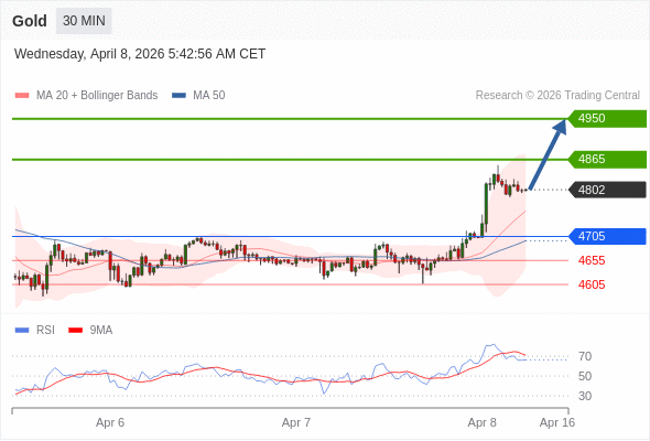 在 4705 之上,看涨,目标价位为 4865 ,然后为 4950 。