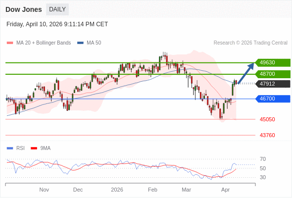 在 46700 之上,看涨,目标价位为 48700 ,然后为 49630 。