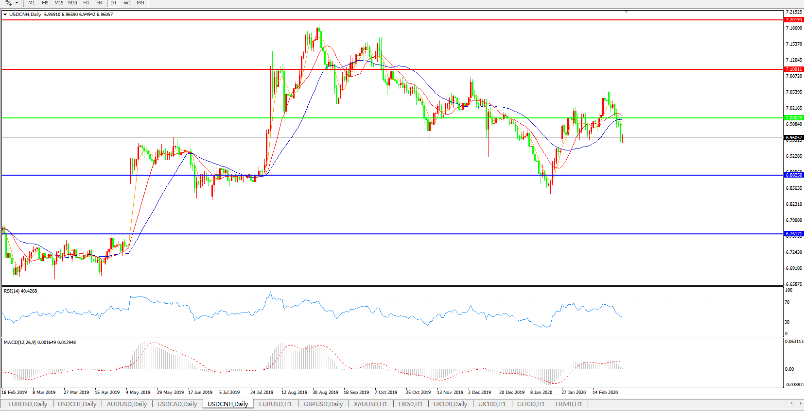 交易策略: 在7.0000之下,看跌,目标价位为6.8820,然后为6.7600。