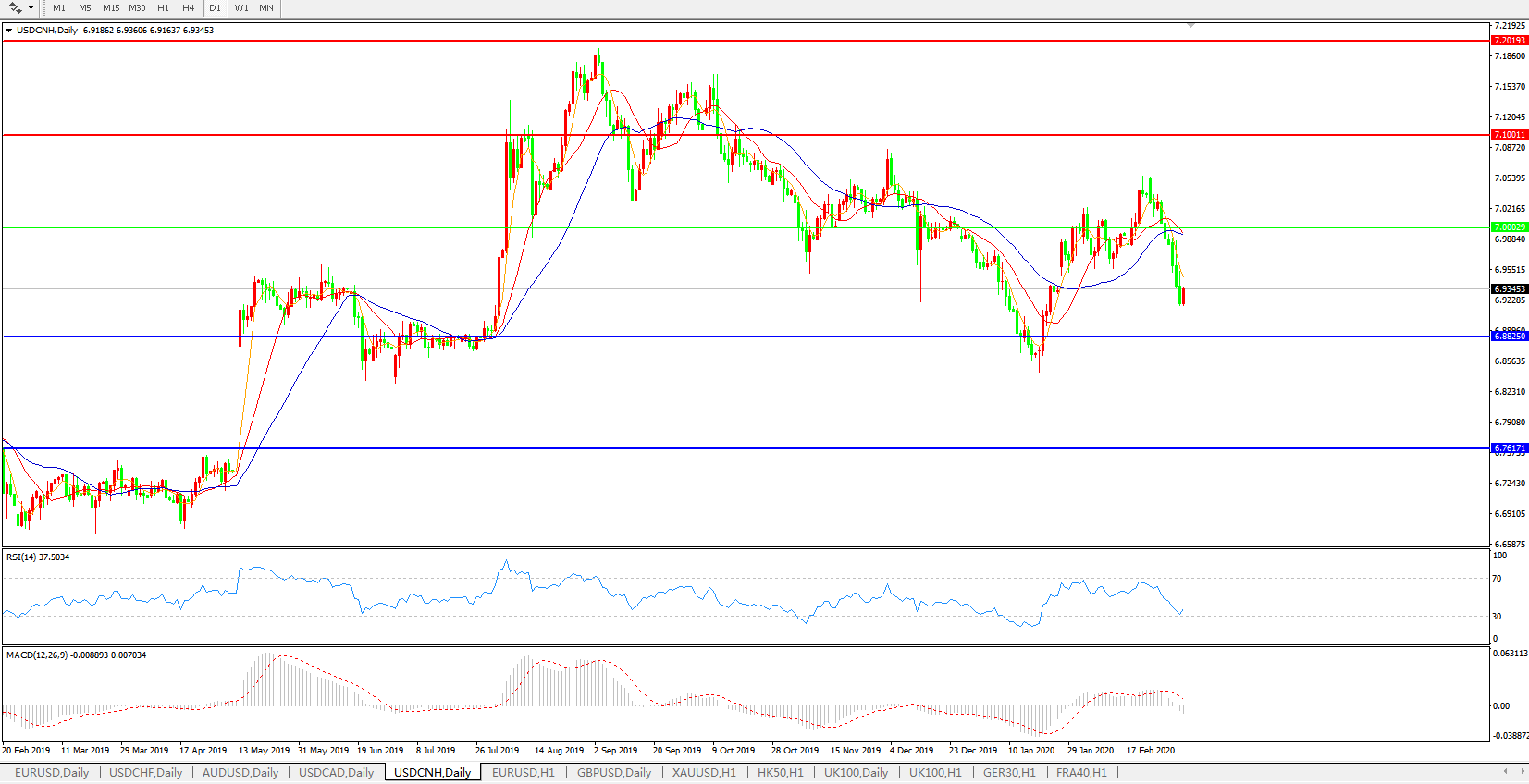 交易策略: 在7.0000之下,看跌,目标价位为6.8820,然后为6.7600。