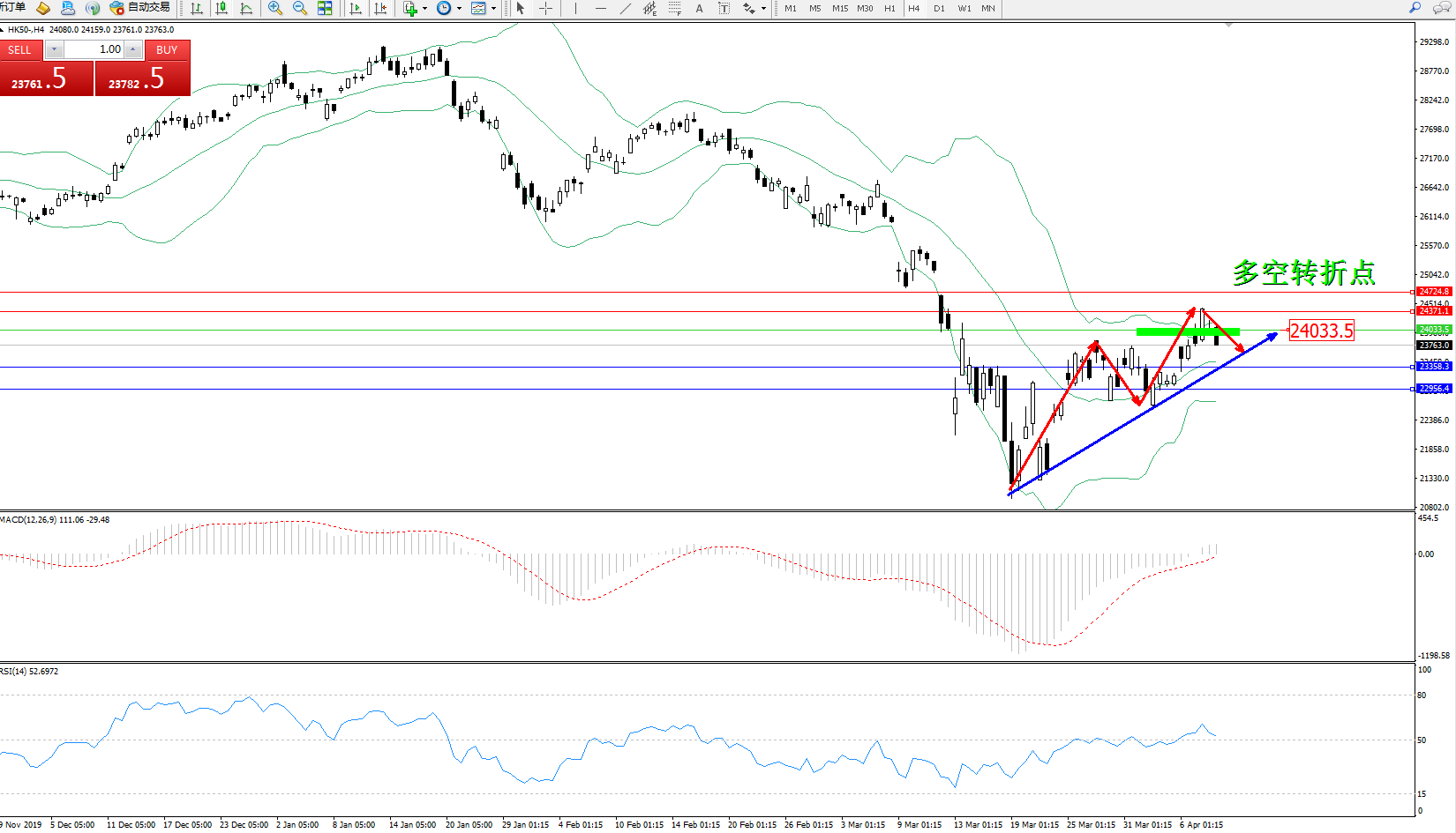 香港恒生指数4月8日(周三)收盘下跌282.92点,跌幅1.17%,报23970.37点;股市场全日呈弱势下跌,国指尾盘更是大跌近2%。市场未能延续前两日的反弹,且大市交易再度萎缩,投资者总体趋于谨慎。主板成交量仅为945.36亿港元,港股通净流入33.53亿港元。香港将推出规模超1000亿港元的疫情纾困新措施。据美国约翰斯·霍普金斯大学发布的全球新冠肺炎疫情实时统计系统,全球新冠肺炎确诊病例昨日新增7.81万例。其中,美国新增2.96万例。国际金融协会(IIF)发布数据显示,随着应对新冠肺炎应对措施全面启动,全球债务负担在2020年将急剧上升;2020年3月,全球政府债务飙升至2.1万亿美元的历史新高,是2017-2019年平均水平0.9万亿美元的两倍多。