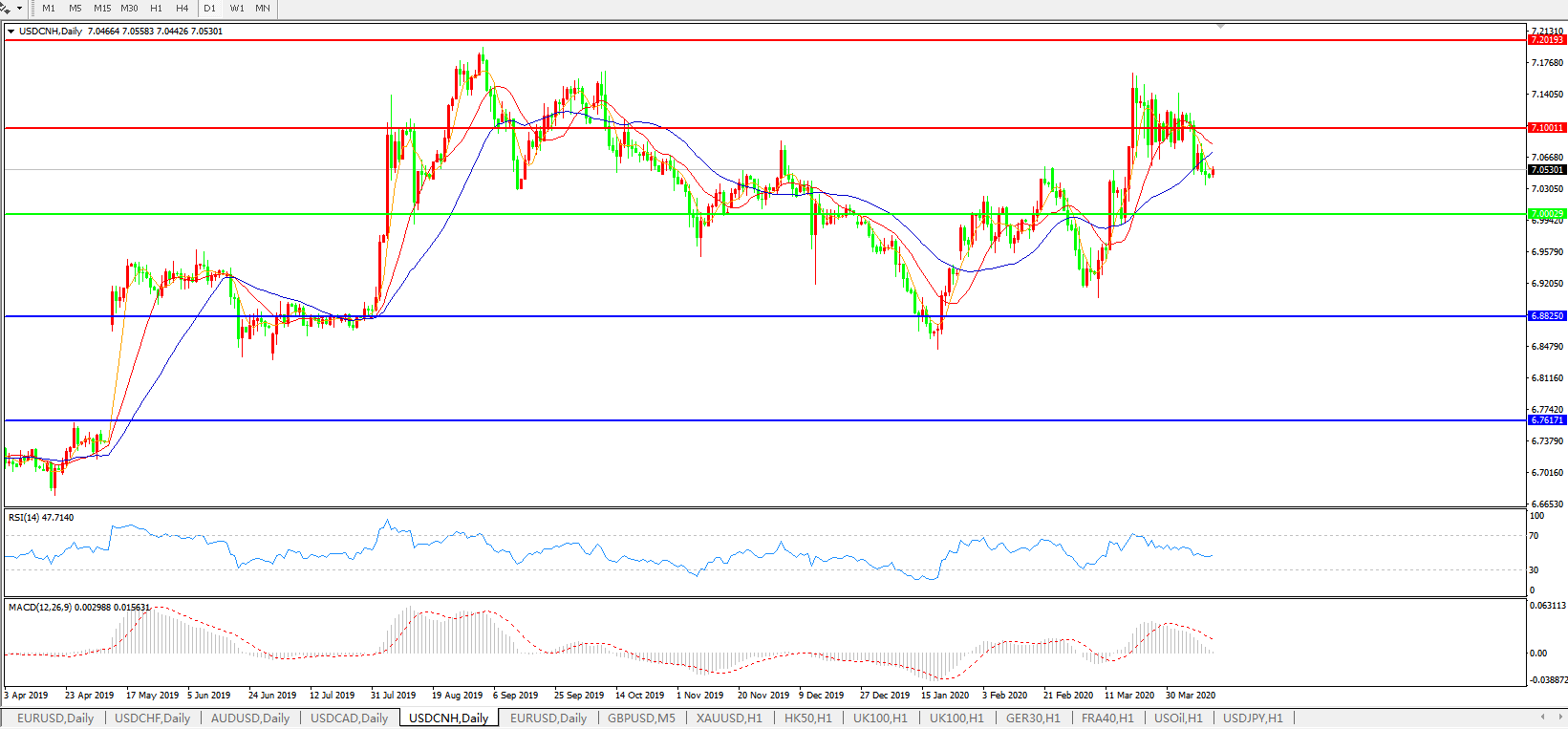 美元兑人民币USDCNH 日线图: