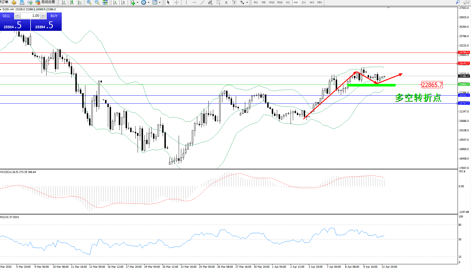 交易策略:22865上方看涨,目标24143、24799