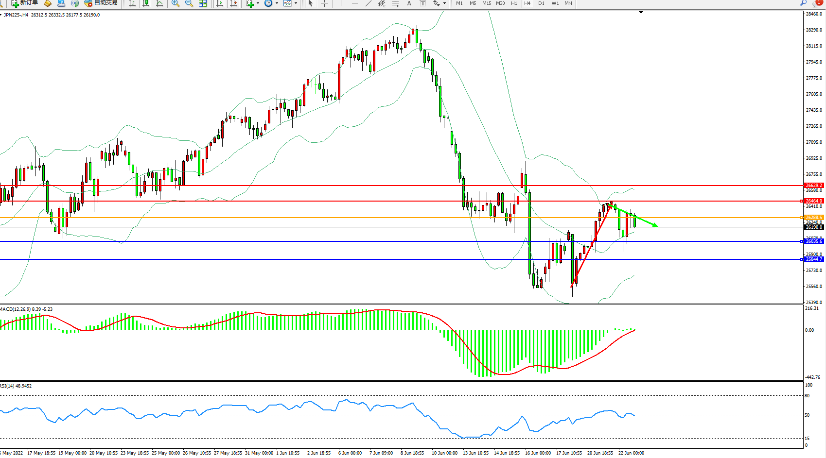 日经指数JPN225——4小时K线图显示: