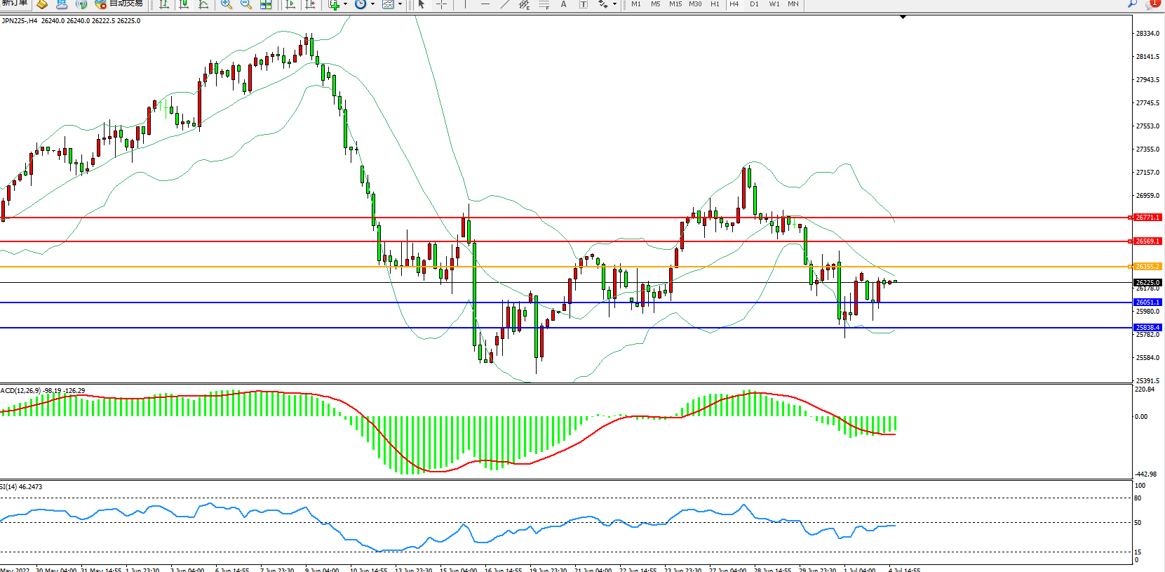日经指数JPN225——4小时K线图显示: