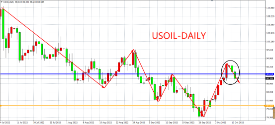 美原油于本周初高位受阻后维持弱势,周二(10月11日)再度下跌2.44%至88美元下方,失守90美元心理关口。原油市场在短暂消化欧佩克+宣布减产200万桶/日后,重新受到强势美元的压制,以及需求遭到破坏的主线当中。
